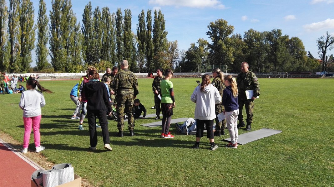 Začátkem října plnili žáci naší školy tzv. ARMY TEST, což je testování fyzické zdatnosti žáků. Záštitu nad touto sportovní akcií převzal generálporučík Ing. Jiří Baloun. Ve dvou dnech si žáci 1. – 5. ročníků vyzkoušeli svou rychlost, sílu, obratnost a vytrvalost v několika disciplínách – šestiminutovém běhu, výdrži na hrazdě ve visu, člunkovém běhu 4 x 10 metrů, dřepech a provádění lehu – sedu po dobu 1 minuty. Všichni žáci se do testování zapojili velmi aktivně, padlo dokonce i několik rekordů (více jak 700 dřepů). Dle nasčítaných výsledků obdrželi nejlepší sportovci černé pásky na ruku, ostatní pásky zelené. ARMY TEST potvrdil, že žáci mladšího školního věku jsou ještě v dobré kondici. Jsme zvědavi, zda se dobrá kondice potvrdí i u žáků staršího školního věku, jejichž testování proběhne na jaře. Za tuto akci patří velké poděkování všem vojákyním a vojákům AČR, kteří realizaci ARMY TESTU zajistili.
