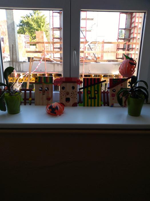 Tuto skvělou dekoraci děti vytvořily při pracovních činnostech. Při její výrobě použily dřevěné laťky, barvy, barevné korálky…,ale hlavně zapojily svou fantazii.