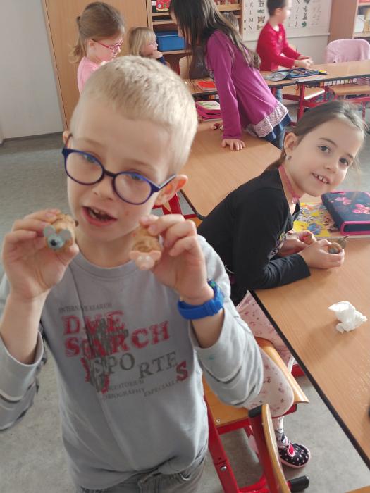 Vedle pravidelné dávky učení z českého jazyka a matematiky si hezky užíváme zpívání v hudební výchově: ke starším písničkám – Pět minut v Africe, Oženil se dudák, Kdo vzal zelí, Cibulička a Grónská zem jsme přidali nově Tři čuníky. Povedlo se nám vyrábění prasátek a myšek v pracovních činnostech – hned na místě si s nimi děti pěkně pohrály při zpívání nové písničky. Navázali jsme na dvě předchozí úspěšné literární dílny nad knihami Ve škole jsou vši a Pan kaktus dílnou s knihou O zeleném prasátku a na pokračování pracujeme s materiálem Zakousněte se do knihy. Děti se postupně stávají čtenáři a je hezké je na této cestě provázet. Nyní mají za úkol vypátrat, co rádi čtou jejich rodiče a případně i sourozenci.