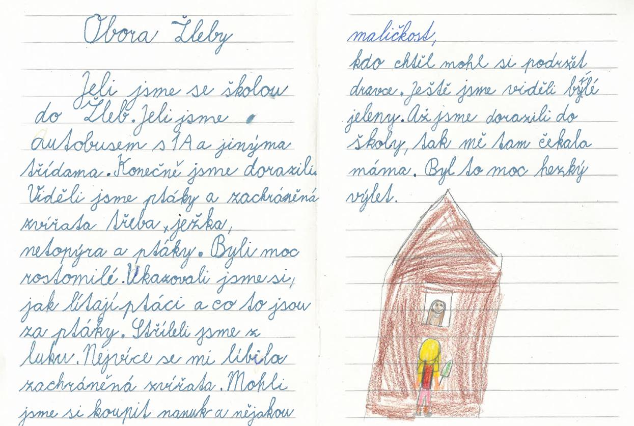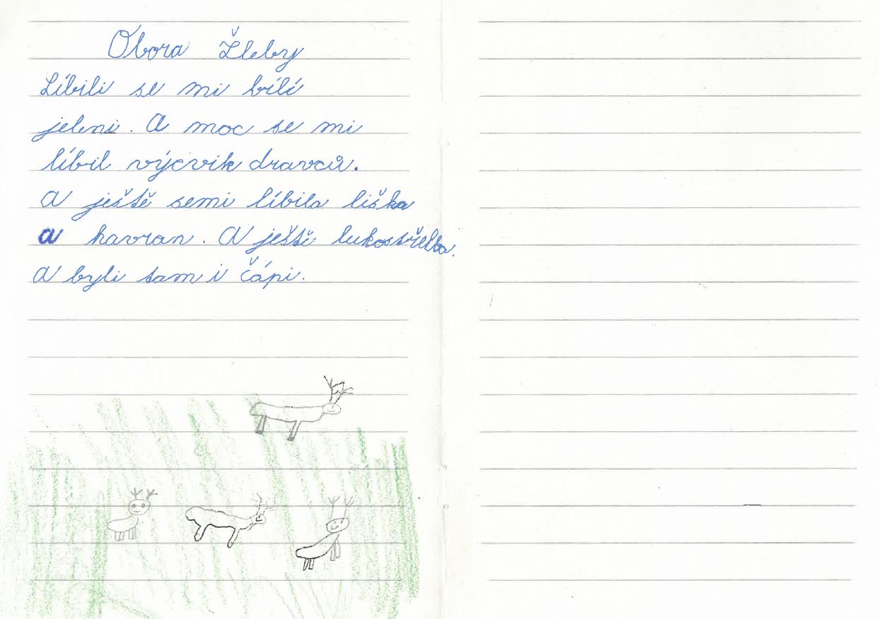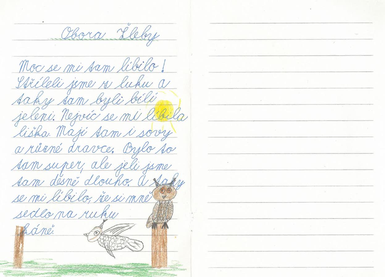 Konec roku neodmyslitelně patří výletům. Naštěstí tomu ani letos není jinak. Žáci druhé třídy a jedné první se vypravili do Obory Žleby. Vyprávění o tom, jak se výlet podařil a co se dětem líbilo, tentokrát přenechám přímo dětem. Podívejte se, co si o výletě napsaly.