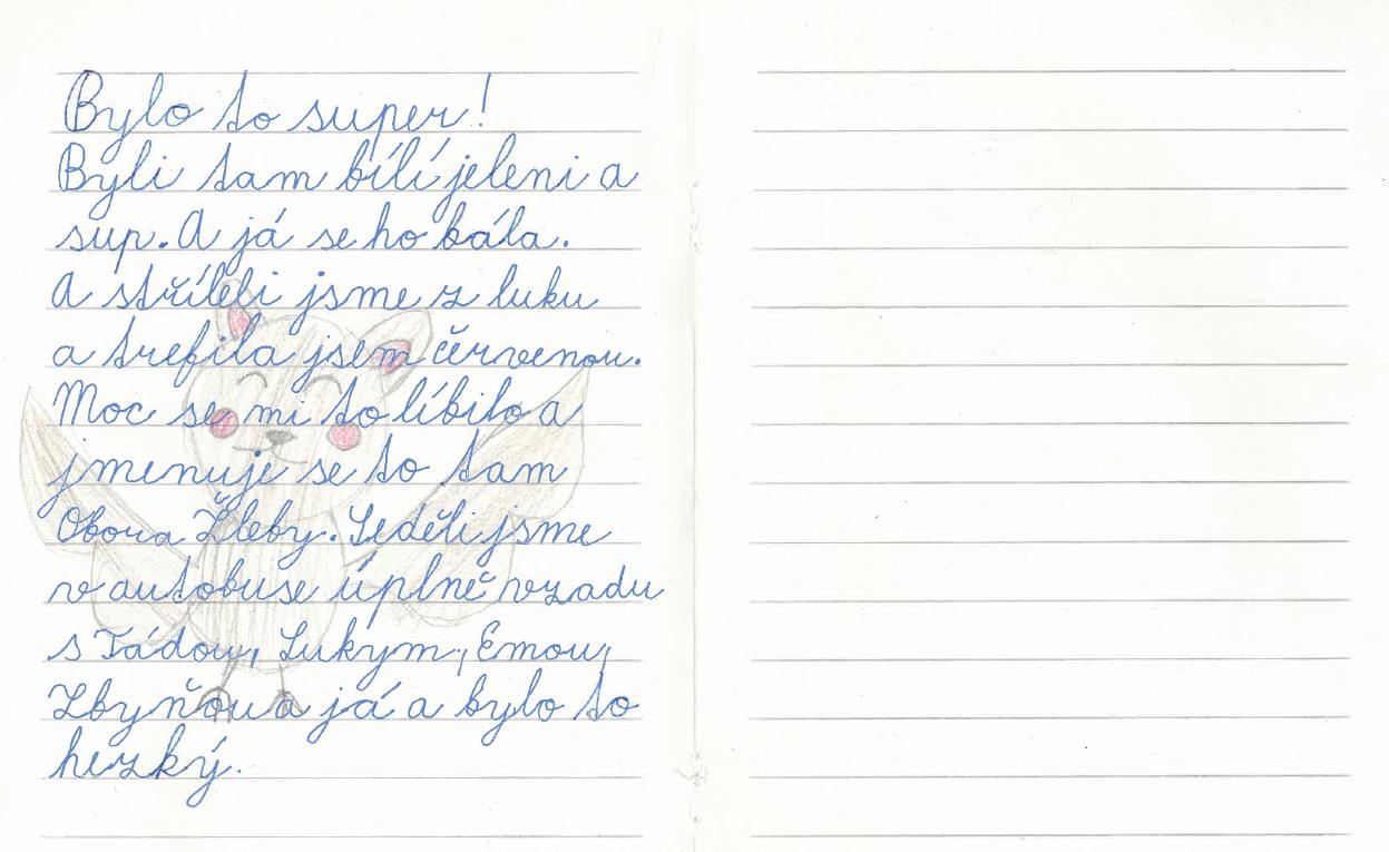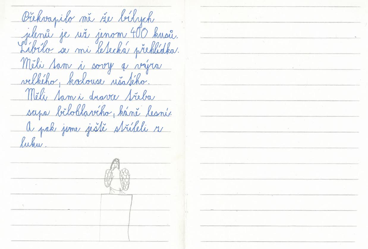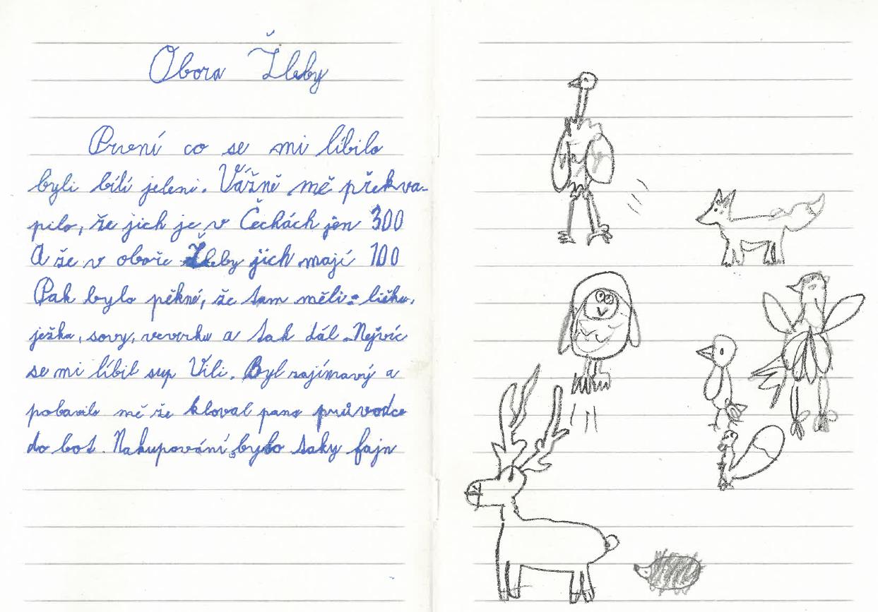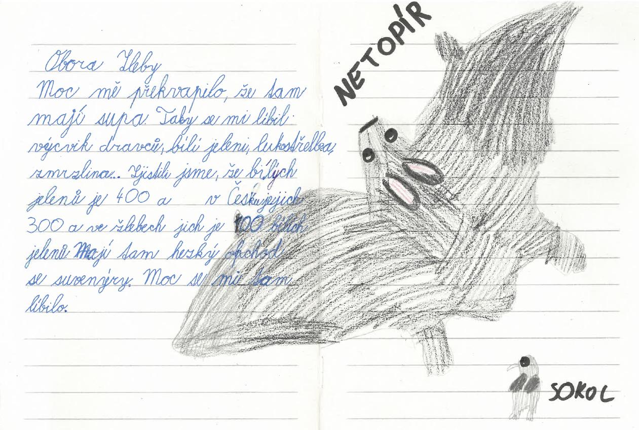 Konec roku neodmyslitelně patří výletům. Naštěstí tomu ani letos není jinak. Žáci druhé třídy a jedné první se vypravili do Obory Žleby. Vyprávění o tom, jak se výlet podařil a co se dětem líbilo, tentokrát přenechám přímo dětem. Podívejte se, co si o výletě napsaly.