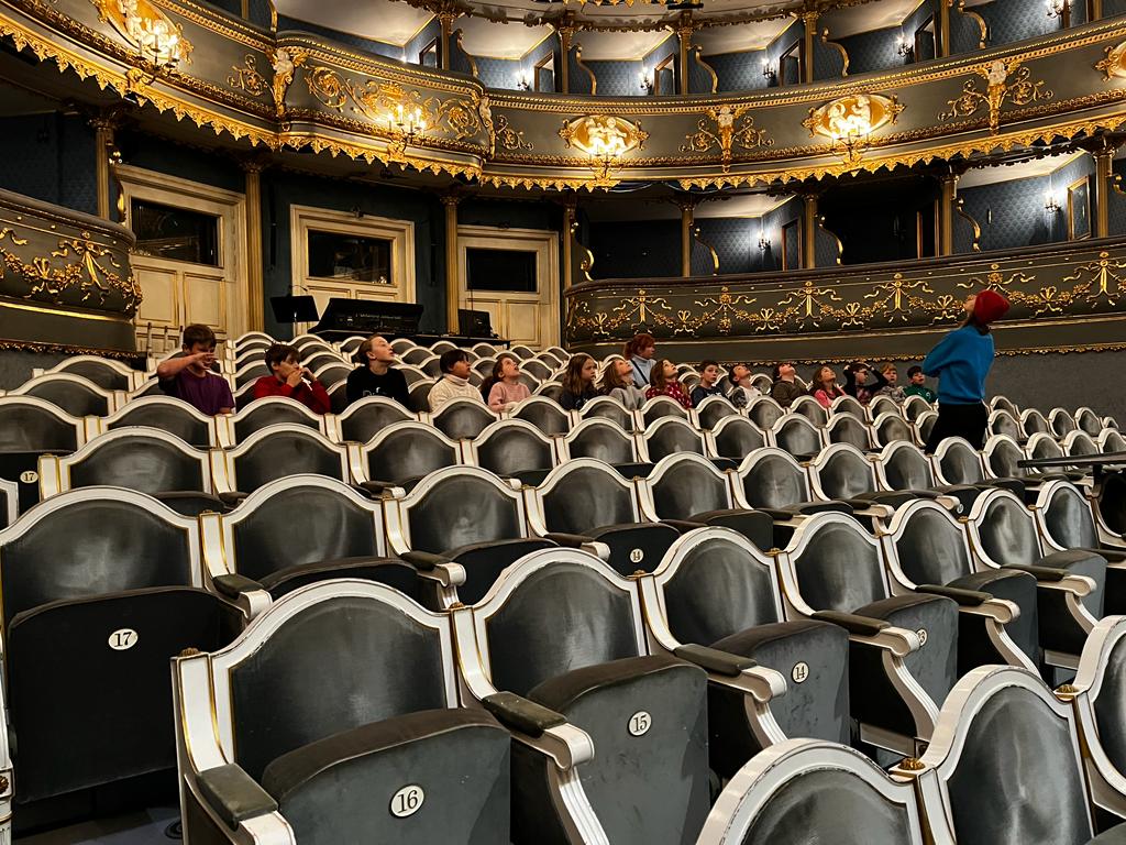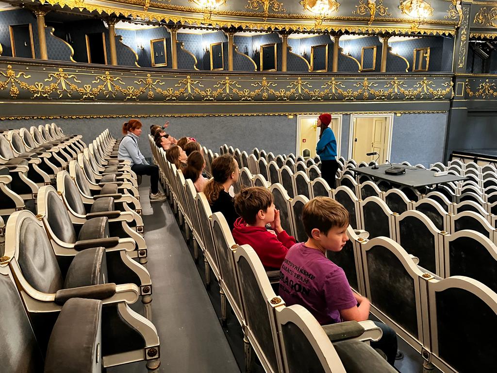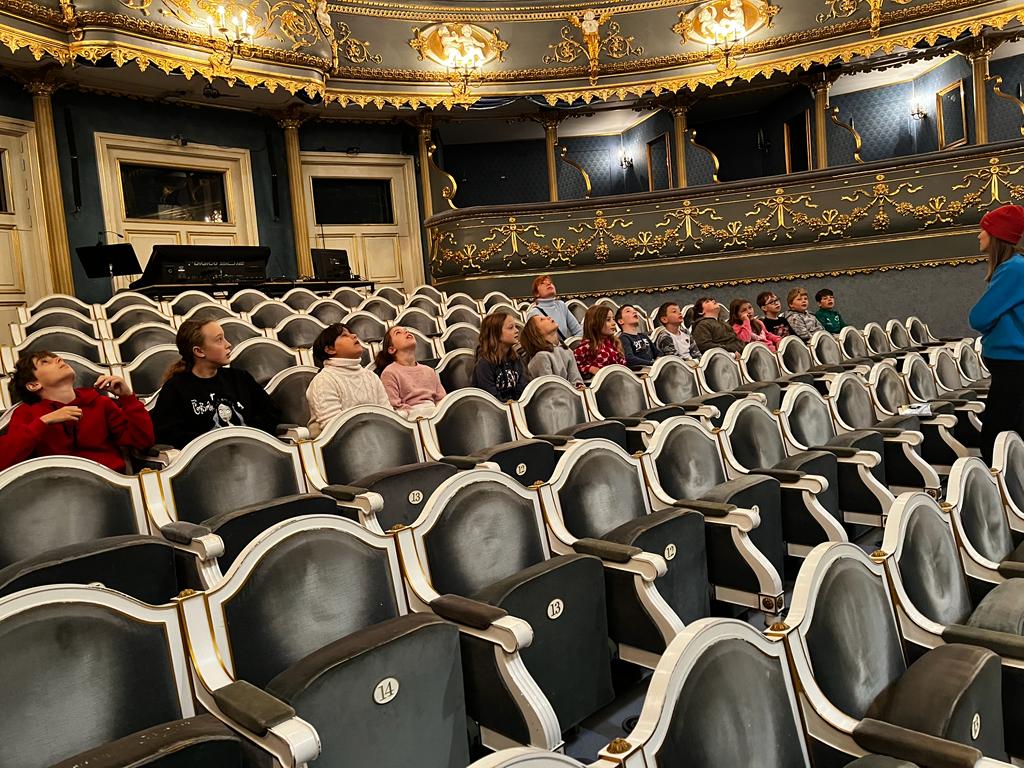 17.10. se třída 4. D vydala na návštěvu Stavovského divadla. Už od začátku bylo jasné, že to bude zcela jiný zážitek než obvyklé školní exkurze. Po příchodu do divadla byly děti přivítány lektorkou, která měla pro ně připravenou zábavnou hru. Děti se rozdělily do skupin a jejich úkolem bylo plnit různá zadání, které je provázely po celém divadle. Musely najít skryté předměty, vyřešit hádanky a objevit tajemství divadelního prostoru. Během plnění úkolů se děti procházely po celém divadle. Procházely se skrz krásné foyer. Prozkoumávaly široké divadelní jeviště, na kterém se odehrávají
