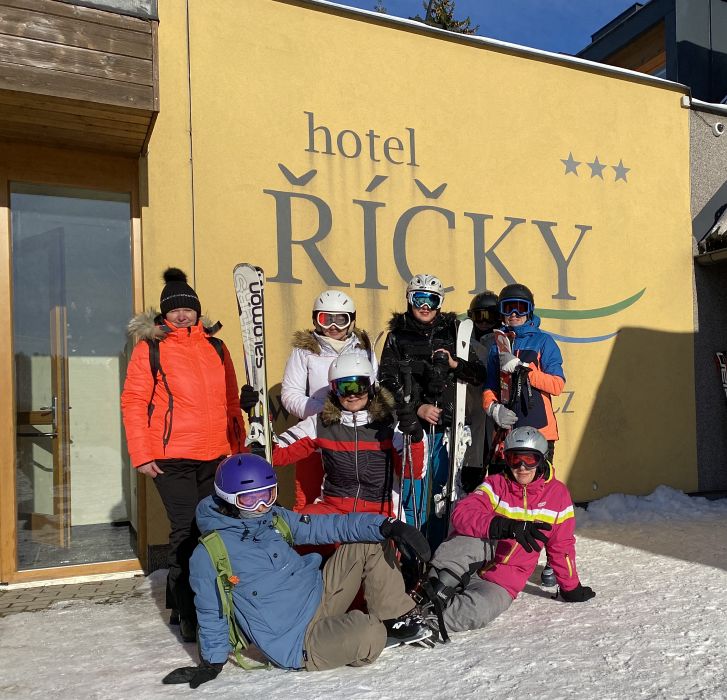 Už druhý den si v Říčkách užíváme krásného počasí a ideálních lyžařských podmínek. Personál hotelu se o stará skvěle a skibusy nám jezdí na čas.