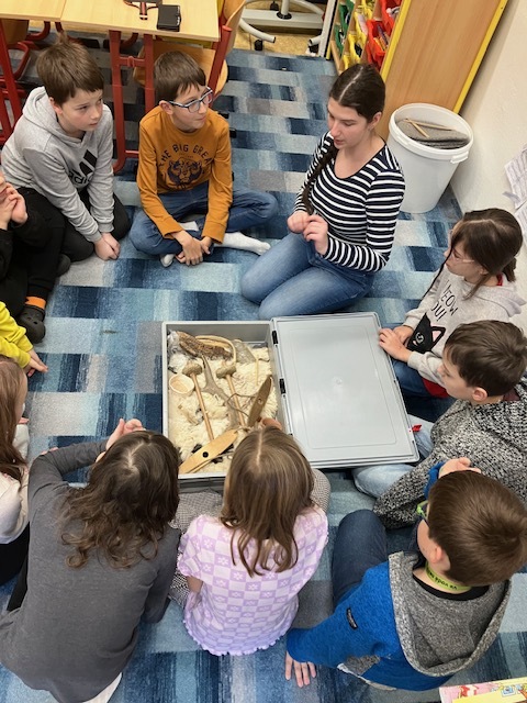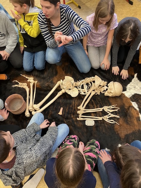 Objevovali jsme funkce i používané přírodní materiály jeskynních maleb. Také jsme vyzkoušeli jednoduché nástroje, spolupracovali v týmech, hledali řešení. Zopakovali jsme své znalosti doposud probraného učiva, orientovali se v čase. Na další část dějin se budeme těšit příští rok.