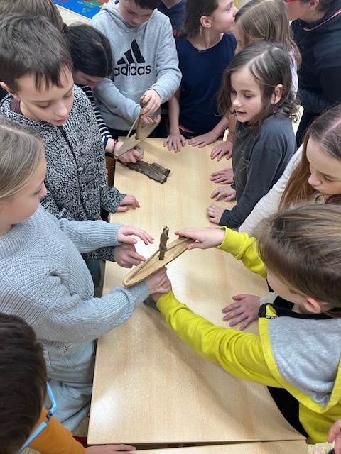 Již podruhé nás navštívili lektoři HistoryParku z Ledčic. Tentokrát nás provedli historií obydlí, staveb, řemesel, ale i pohřbívání.