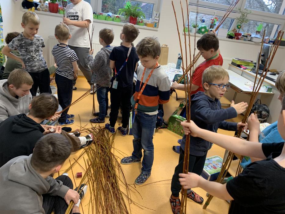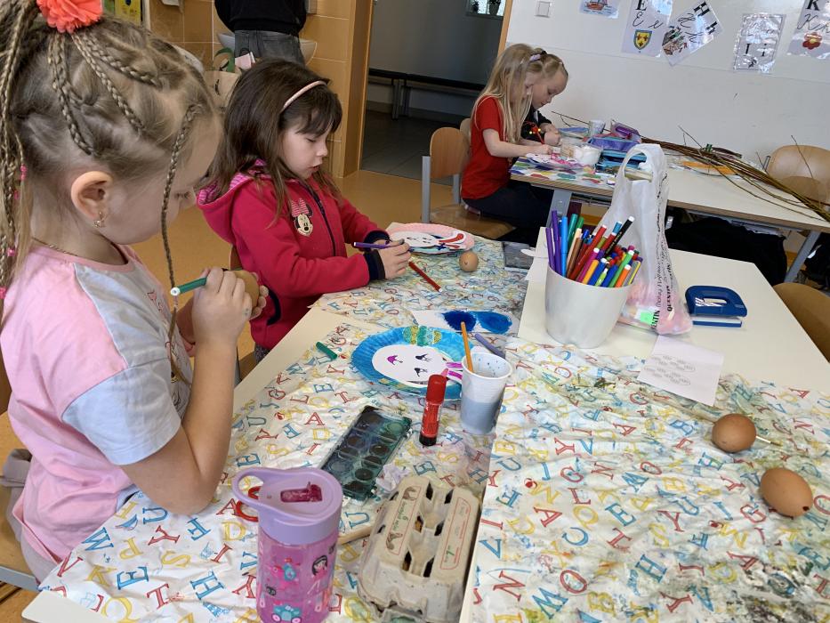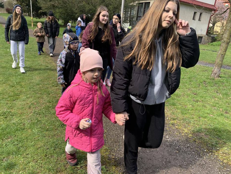 Dne 25.3. pro třídu I.C připravili žáci z 9.C tvořivé předvelikonoční dopoledne plné her a překvapení. Naši prvňáčci si vytvořili společně s deváťáky velikonoční dekorace z vrbových proutků, vyfouklých vajec a barevných stuh. Žáčci si za pomoci starších spolužáků upletli pomlázky. Po společném tvoření jsme se všichni vydali na „ŠIPKOVANOU“. Šli jsme po označené trase uvnitř školy a po venkovních prostorách. Prvnáčci společně plnili vědomostní, pohybové, úkolové a hledací úkoly. Na závěr trasy hledali v parku u knihovny ukryté sladkosti. Na ukončení naší společné akce jsme deváťákům zazpívali pár písniček. Touto cestou bych chtěla poděkovat žákům 9.C a jejich vyučujícím za uskutečnění takových akcí.