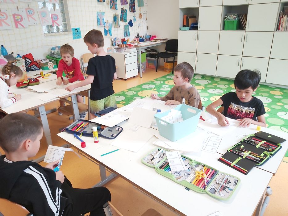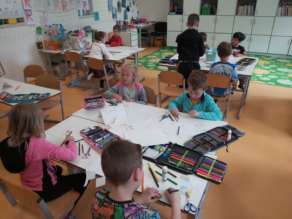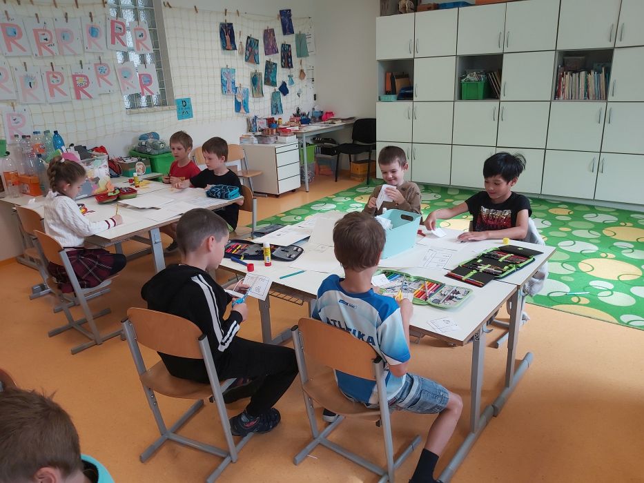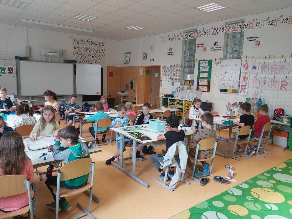 Náš první školní rok se pomalu překlápí do cílové rovinky a učení nového učiva stále častěji střídá praktické využívání získaných vědomostí. Jednou z možností, jak si vyzkoušet, co už umíme, jsou centra aktivit. Umožňují nám zjistit, jak nám jde spolupráce s kamarády i samostatná práce. Vyzkoušeli jsme si plánování a rozvržení svých sil i času, čtení zadání a práce s pomůckami. Zjistili jsme, zda dokážeme dokončit práci zadanou na všech 6 stanovištích a zhodnotit své výsledky a úsilí. Na dvou stanovištích jsme si vyzkoušeli své pisatelské dovednosti. Mile nás překvapilo, kolik slov již dokážeme správně napsat. Další tři stanoviště patřila naší oblíbené matematice. Procvičili jsme nejen počítání a tvorbu příkladů, ale i prostorovou představivost pomocí parket. Poslední stanoviště patřilo tvoření, kompletaci a přípravě výsledků práce na závěrečné prezentování. Jak se nám vše podařilo, si můžete prohlédnout na fotkách. My už ale víme, že se nám takto pracovalo moc hezky. Všichni jsme si z práce dokázali vzít nějaké poučení pro práci příští a těšíme se na další příležitost k podobné činnosti.