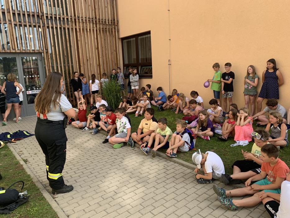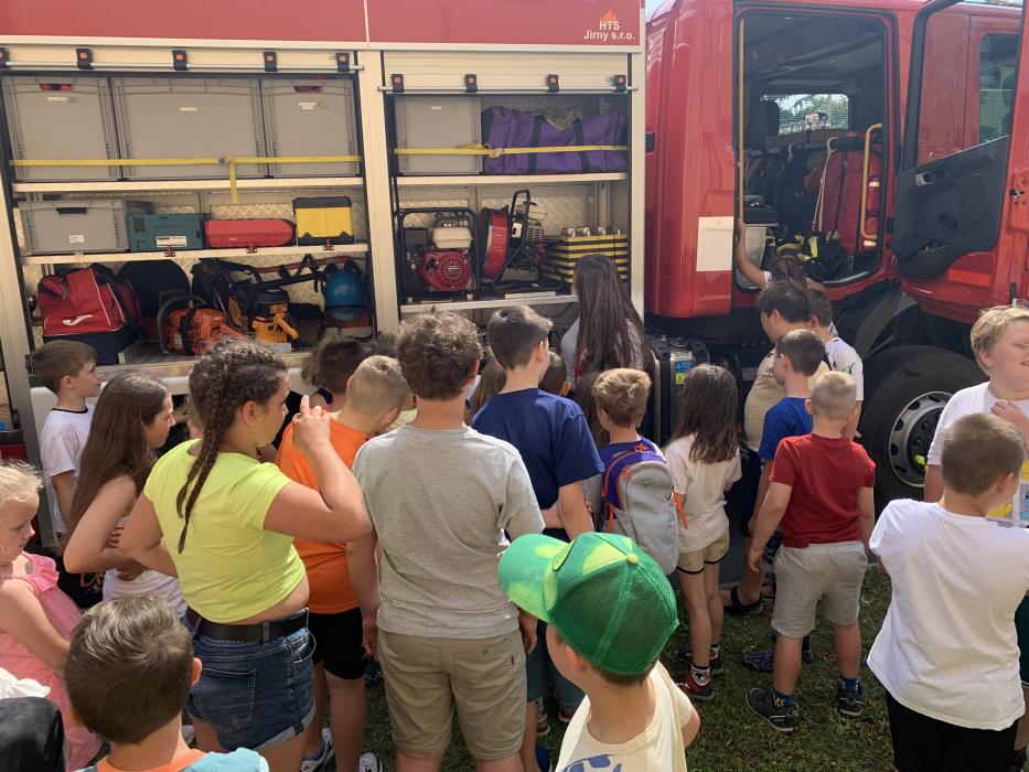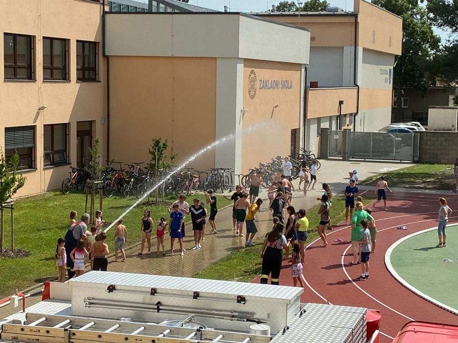 Dne 26. 6. jsme měli tu čest přivítat ve škole hasiče z Čelákovic, Lucii Nims a Romana Bláhu. Jejich návštěva byla nejen poučná, ale také velmi zábavná pro všechny přítomné. Hasiči se s dětmi podělili o základní informace o požární prevenci a bezpečném chování v případě nebezpečí. Děti se dozvěděly, jak správně volat tísňovou linku a co dělat, když se něco nepředvídaného stane. Nejvíce však děti nadchla praktická ukázka, při které mohly vidět a dokonce vyzkoušet různé hasičské vybavení. Měly možnost se podívat do hasičského auta, vyzkoušet si hasičskou helmu a dokonce stříkat vodu z hasičské hadice. Celá akce byla skvělým zážitkem pro děti i pro nás dospělé. Doufáme, že se hasiči brzy zase vrátí a přinesou další zajímavé informace a zábavu pro naše žáky. Děkujeme hasičům za jejich čas a ochotu a těšíme se na další spolupráci s nimi.