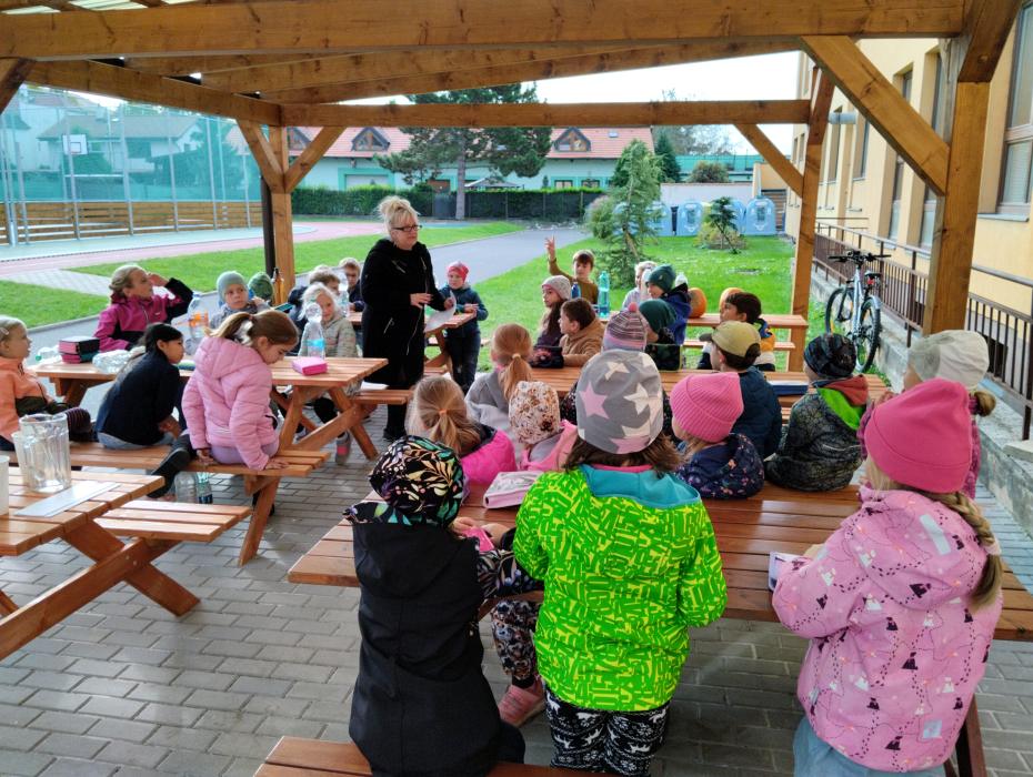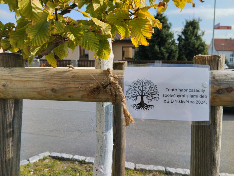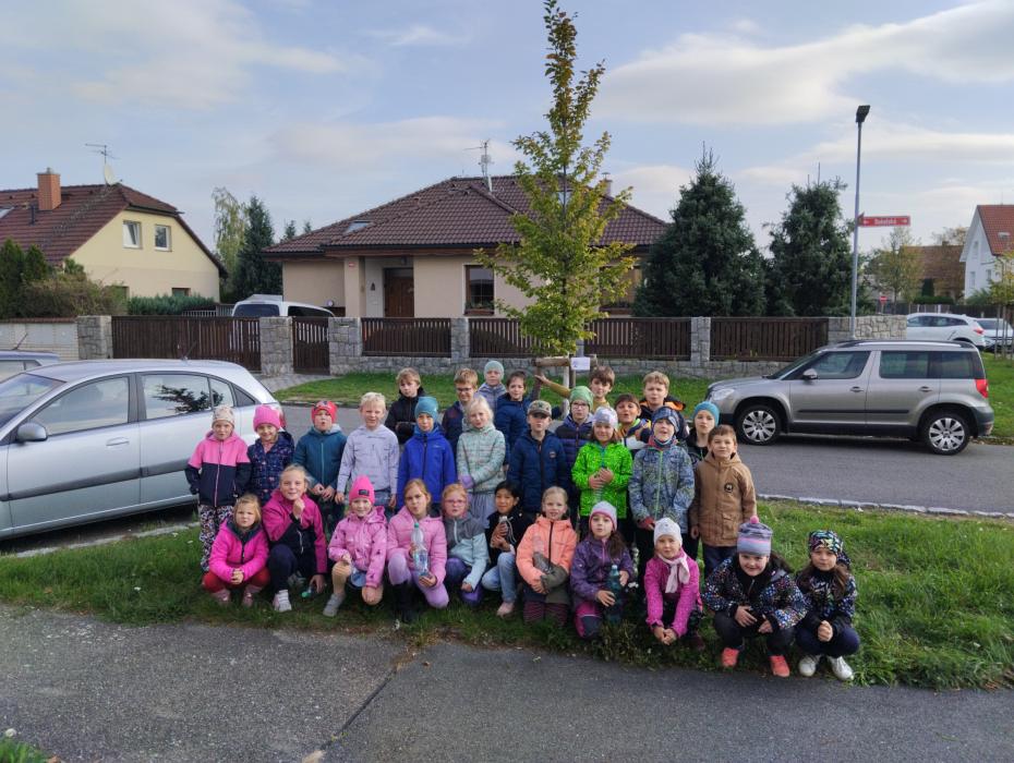 společně, pak následoval přípitek čajem z plodu stromů a procházka k habru. Stromek dostal od dětí dárky v podobě nové cedulky s informací o zasazení, poslechl si pohádku o stromku, který neposlechl maminku a také písničku Stromy od Zdeňka Svěráka a Jaroslava Uhlíře, kterou jsme zazpívali společně všichni dohromady. Stromek chodí děti s novou paní učitelkou stále zalévat a je na něm vidět, že sílí a roste. Přejeme mu, aby svou první zimu přečkal ve zdraví, a budeme se těšit, až se zase na jaře zazelená a vytáhne se o pár cenťáčků.