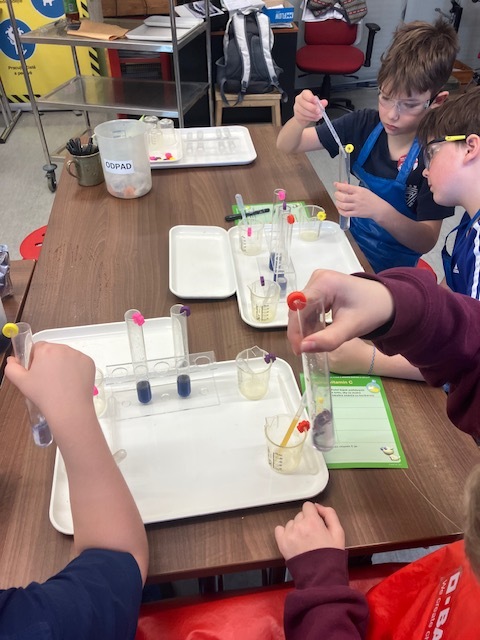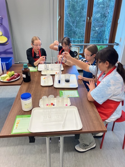 Návštěvou NTM v Praze jsme se seznámili s prvními vědomostmi o chemii prostřednictvím pokusů v laboratoři. Pokusili jsme se zodpovědět otázku – Proč jsou ovoce a zelenina barevné a zdravé  a analyzovat látky prostřednictvím dvou chemických experimentů. Na chemii ve vyšším ročníku se moc těšíme!