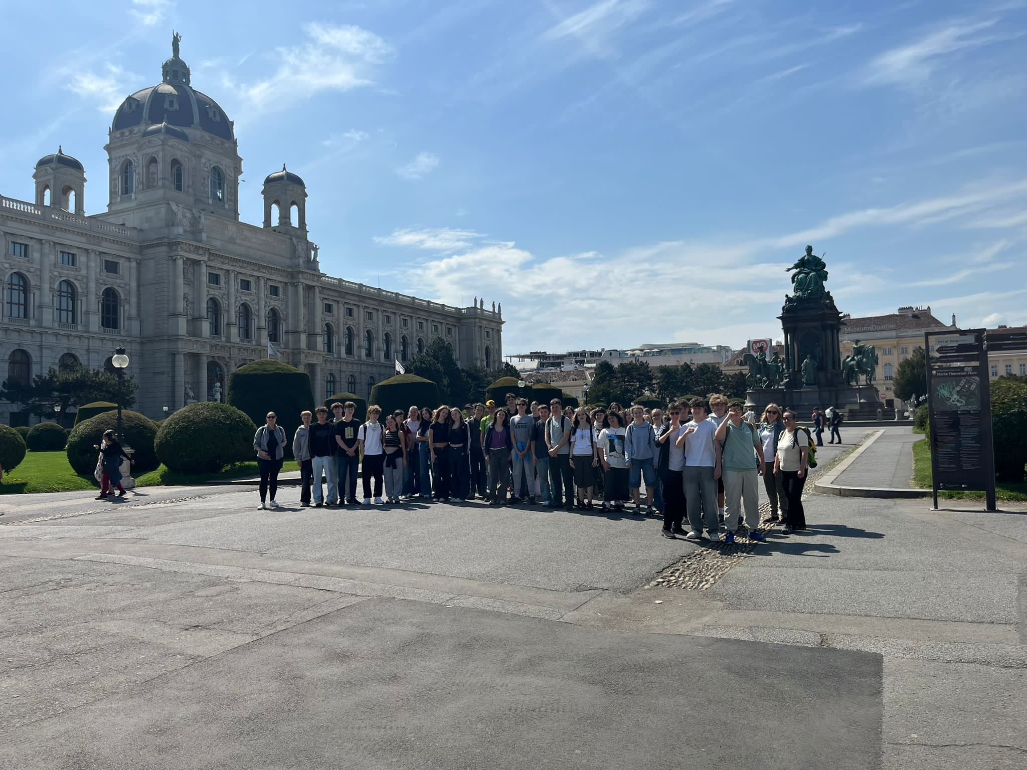 85. Poté jsme se vydali na procházku historickým centrem, které je zapsáno na seznam světového dědictví UNESCO. Na náměstí Maria-Theresien-Platz jsme obdivovali pomník se sochou Marie Terezie a budovy muzeí Naturwissenschaftliches und Kunsthistorisches Museum. Pokračovali jsme k Hofburgu, který jsme si prohlédli nejen zvenku, ale i zevnitř – navštívili jsme totiž Kaiserliche Schatzkammer s císařskými korunovačními klenoty. Po obědě jsme zavítali do gotického chrámu Stephansdom a prošli se nejen po majestátní třídě Am Graben, ale i křivolakými uličkami s tajemnými zákoutími. Před odjezdem jsme si nemohli nechat ujít návštěvu areálu barokního zámku Schönbrunn. Vystoupali jsme na Gloriette, užili si nádherný výhled na celé město a symbolicky se tak s Vídní rozloučili.