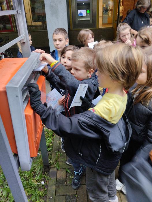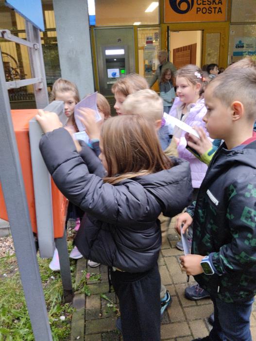 Devátý říjen si děti z 2.A a 2.D připomněly, že svůj svátek může slavit např. i Česká pošta. Ráno jsme si zahráli paměťovou hru a pak se vydali na místní Českou poštu, kde pro nás paní pošťačky měly připravený perfektní program – ukázaly dětem, jaká je cesta pohledů, které si děti napsaly ve škole pro své nejbližší – hodily si je do schránky, schránku vybraly, dopisy orazítkovaly, rozdaly mezi sebou a následně je předaly doma adresátům. Také děti viděly zázemí pošty, zkusily si práci s počítačkou bankovek a nahlédly dokonce i k přepážce, kde běžně vídají paní pošťačky. Ve škole si pak ještě procvičily počítání s dopisy, vyluštily křížovku a podívaly se na Pošťáckou pohádku od pana Karla Čapka. Samozřejmě jsme nevynechali ani historii doručování – povídali jsme si, jak se způsob doručování zpráv a informací vyvíjel, od osobních doručovatelů, kteří museli ujít i stovky kilometrů, aby vzkaz předali, až po podzemní poštu, doručování vlakem, letadlem, listonošem a v novější době telegrafem, telefon a počítačem. Děti zažily skvělý den plný nových informací, her a poznávání. Moc děkujeme obětavým paní pošťačkám z čelákovické pošty.