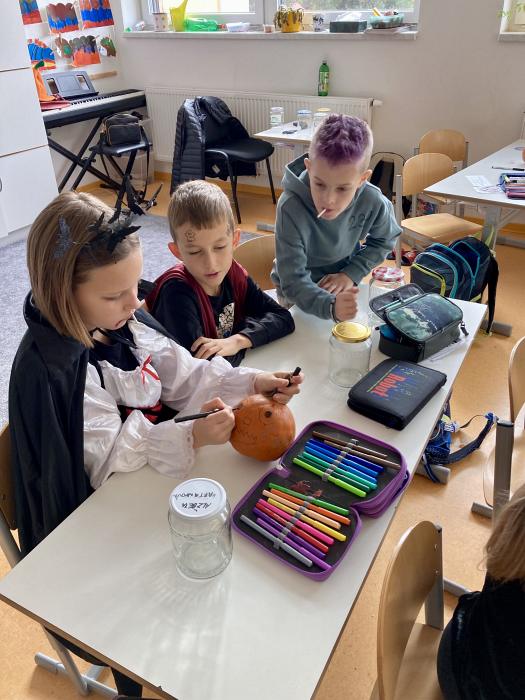 Třída 3. B oslavila poslední školní den před prázdninami ve velkém stylu! Děti se proměnily v úžasné halloweenské bytosti a předvedly parádní kostýmy. Škola v ten den nebyla jen o sezení, ale i o zábavě! Žáci si zkusili halloweenskou „plotovku“ plnou záludných otázek. Procvičili si i mozkové závity při luštění slovních úkolů a řešení strašidelného násobení. Na úplný závěr jsme si symbolicky „zavařili“ podzim a pak už hurá na zasloužené podzimní volno!
