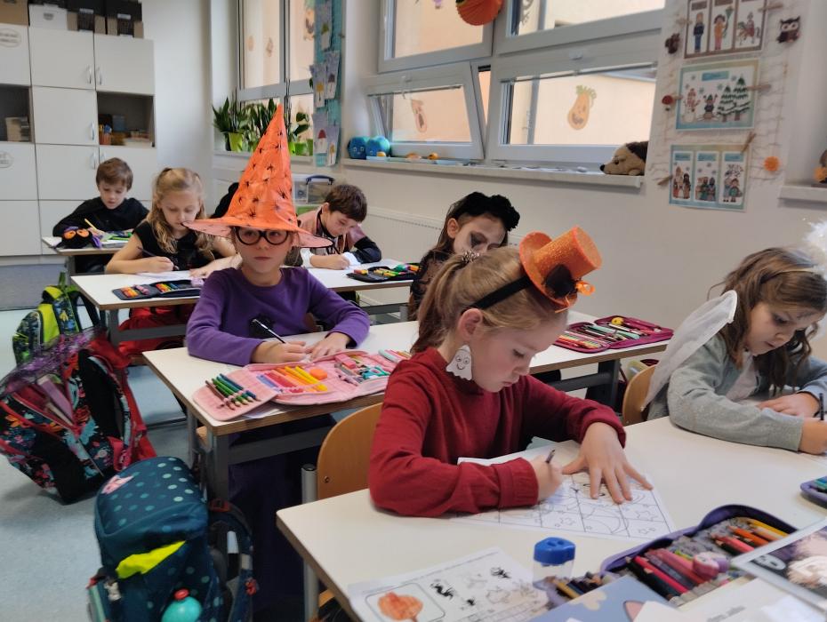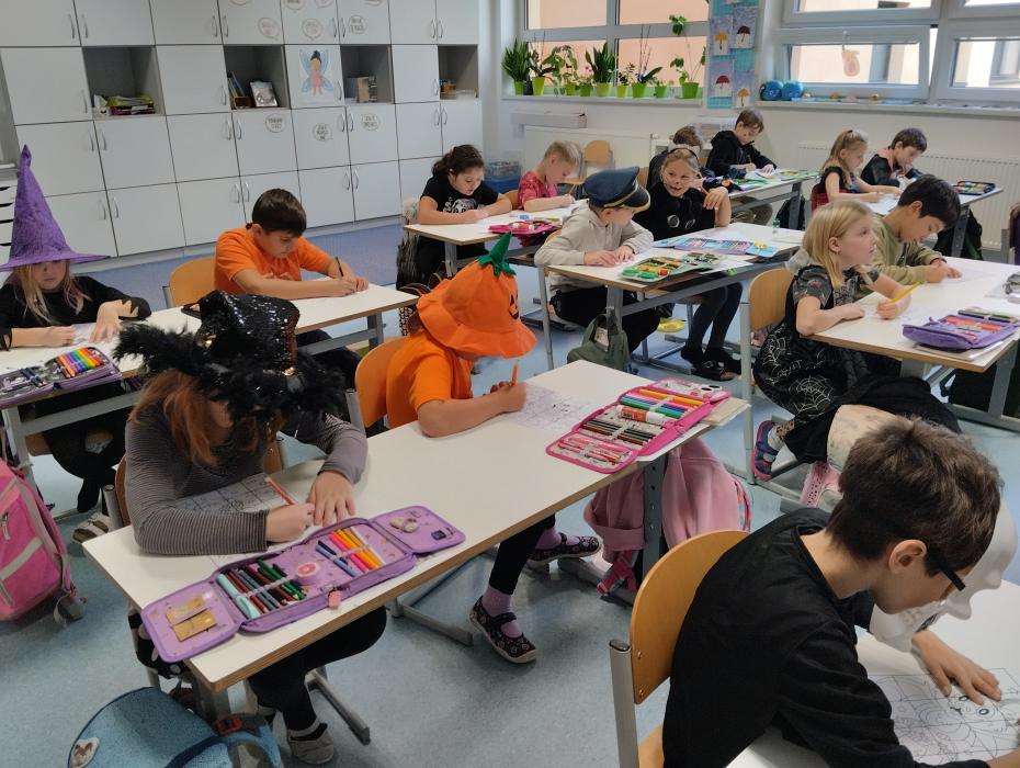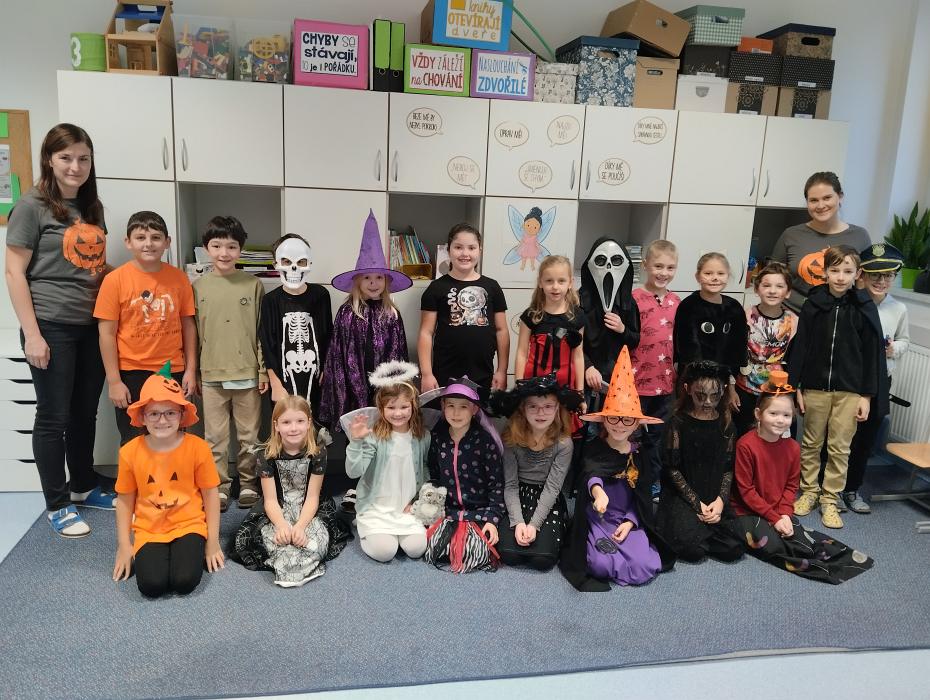 Podzimní prázdniny utekly jako voda a my jsme se v plném počtu sešli ve škole na našem speciálním projektovém dnu – Halloween a strašidelné učení. Nebylo to jen o maskách a výzdobě, i když to samozřejmě tu atmosféru zpříjemní, ale také o tématickém čtení, počítání, vybarvování a i tancování. Vyučovací den byl plný zábavy, smíchu, opakování učiva a legrace s kamarády. Brzy nás čeká svatý