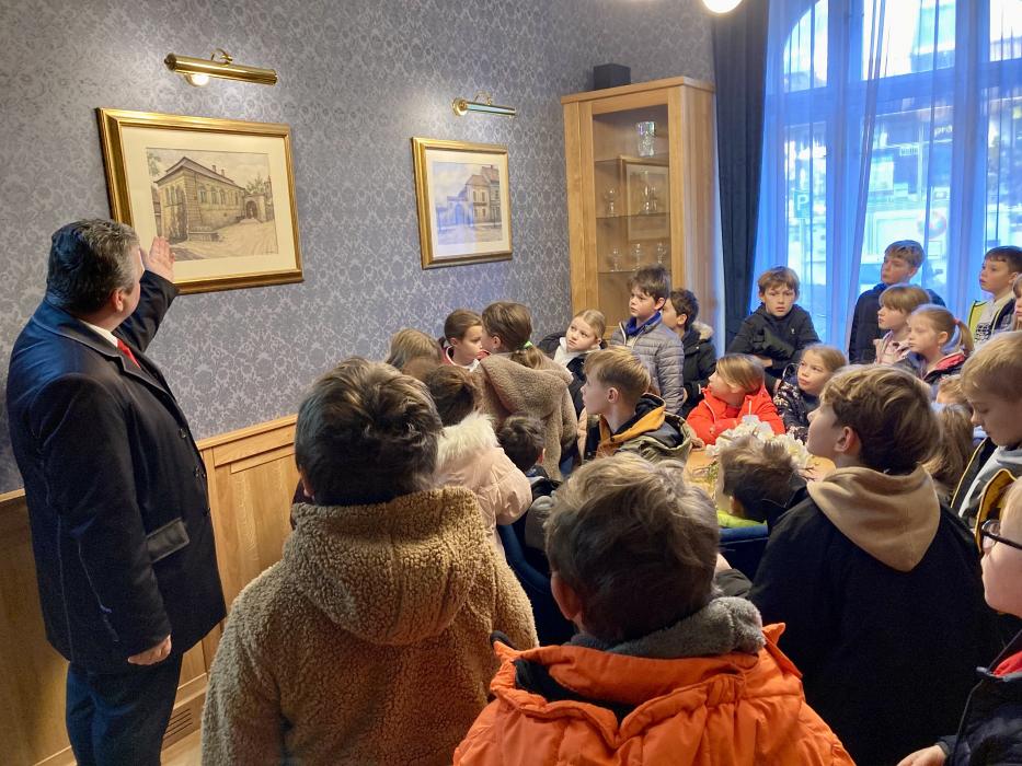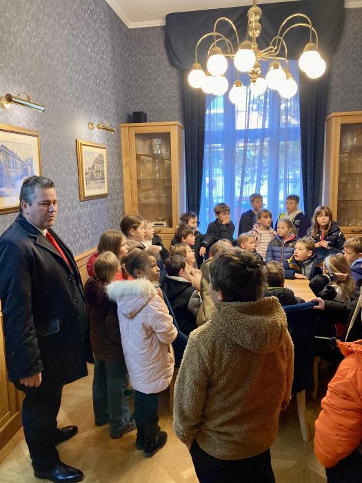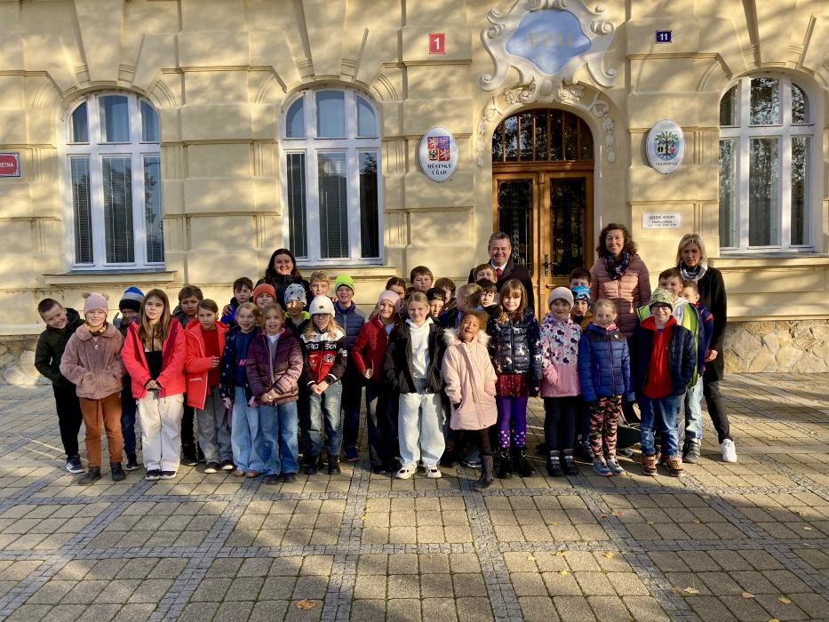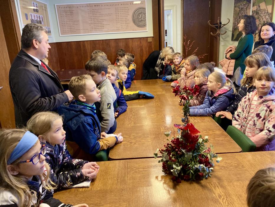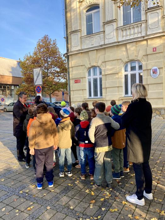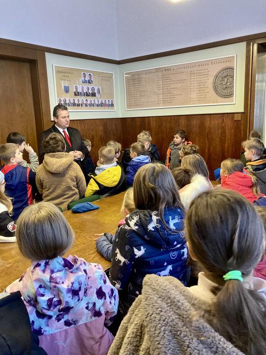 Ve čtvrtek nás na radnici přivítal pan místostarosta Studnička a hned od prvních slov bylo jasné, že nás čeká opravdu zajímavá návštěva. S velkou ochotou a trpělivostí nám otevřel dveře do bohaté historie čelákovické radnice i samotných Čelákovic a přidal i několik příběhů o změnách, které město v posledních letech zažilo. Prošli jsme si malou obřadní síň, zasedací místnosti i kancelář pana starosty — a každé místo mělo svou vlastní atmosféru. A když jsme vystoupali na věž radnice, čekala nás doslova třešnička na dortu: úchvatný výhled na celé město.