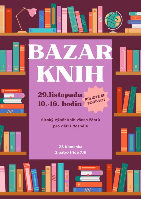 Zveme všechny návštěvníky dne otevřených dveří na bazar knih, který se bude konat od 10 do 16 hodin v učebně 7. B v druhém patře ZŠ Kamenka. Přijďte se potěšit a vybrat dárek pro sebe nebo vaše blízké.