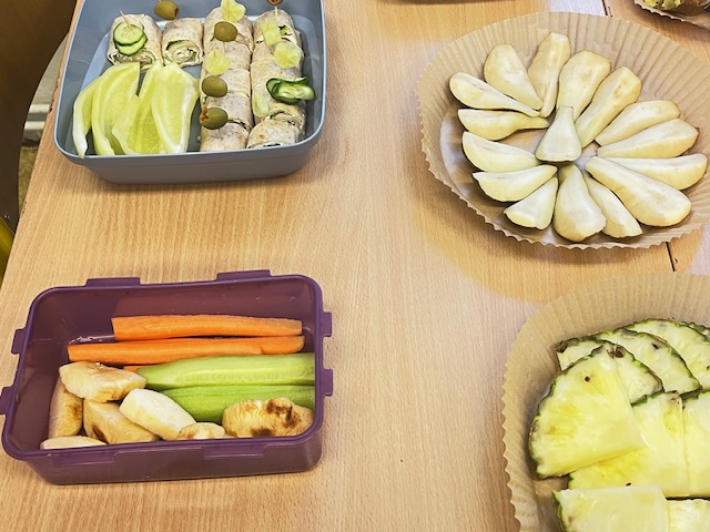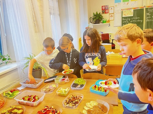 Dnešní svačinka? Zdravá, společná a plná úsměvů! Dnes to u nás ve třídě vonělo víc než obvykle. Rozhodli jsme se totiž podpořit zdravý životní styl a zároveň upevnit naši partu netradičním způsobem – společnou zdravou svačinou! Poprosili jsme naše šikovné maminky o přípravu zdravých dobrot, o které se děti mohly podělit se svými spolužáky. Lavice se zaplnily ovocem, zeleninovými špízy i domácím zdravým pečením.