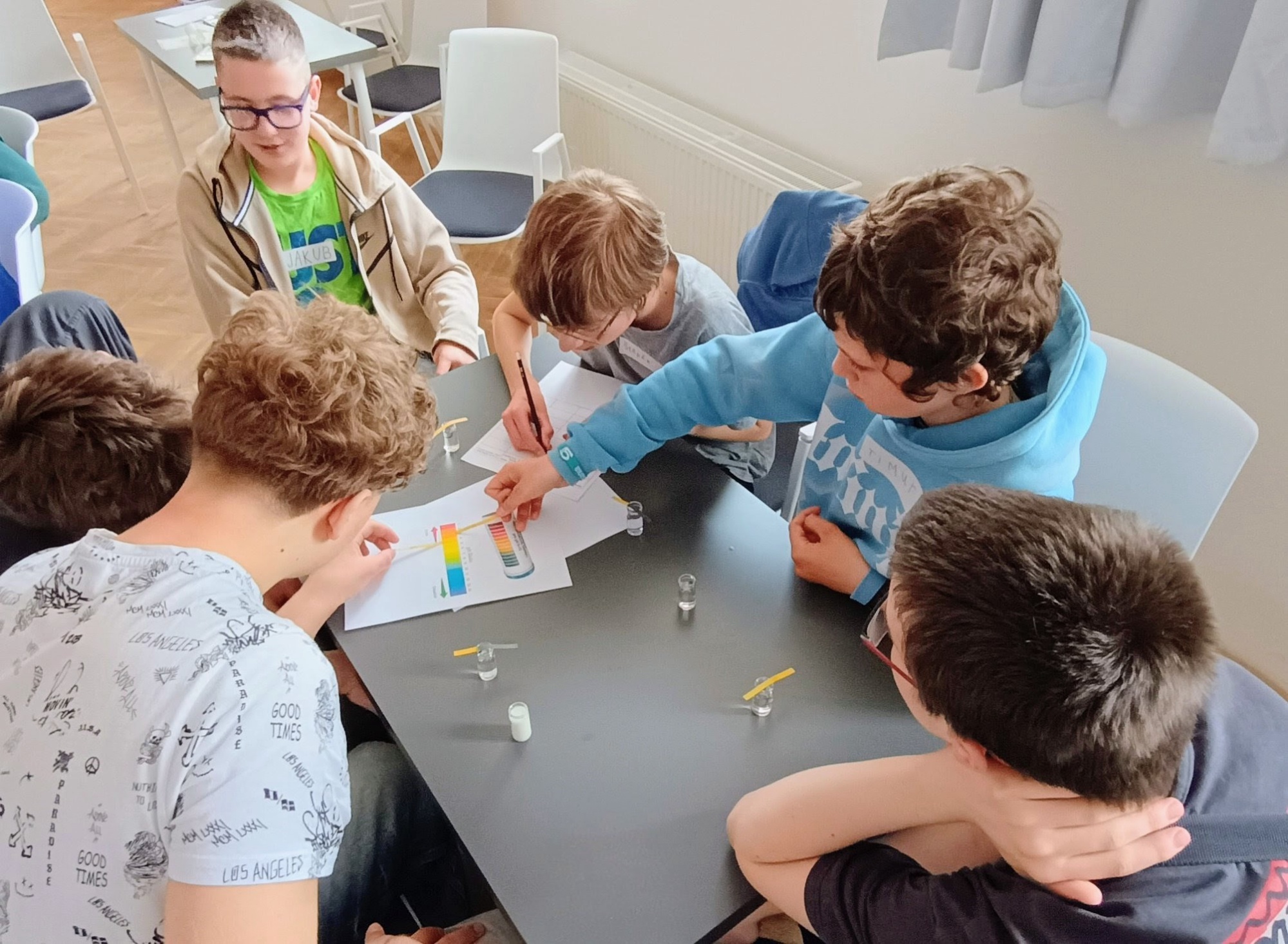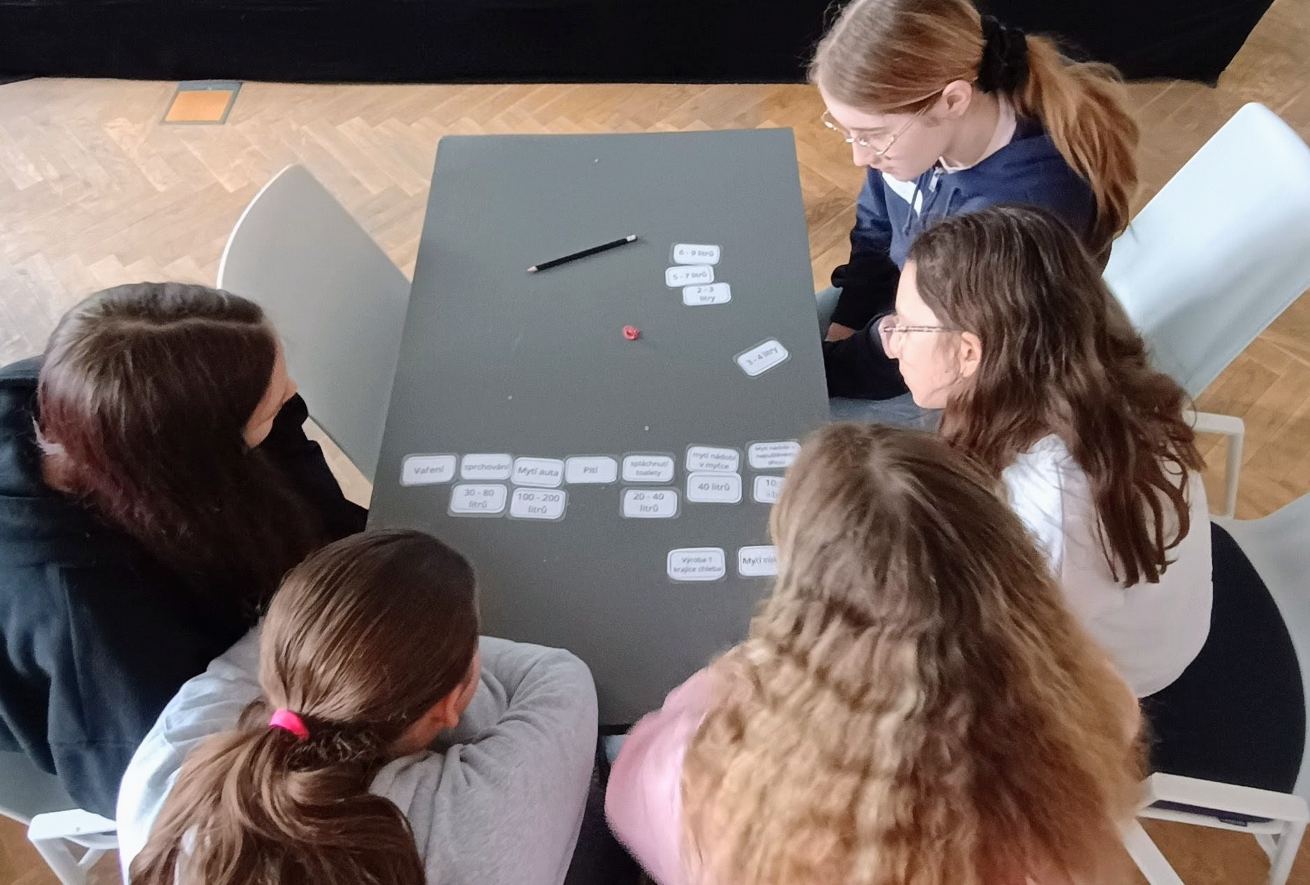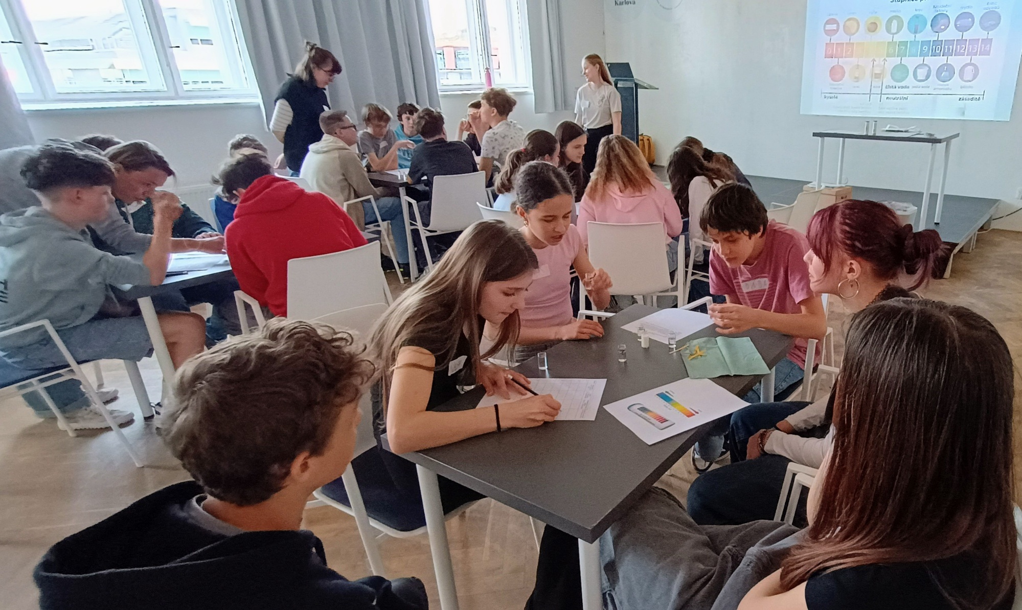 Ve čtvrtek 16.4. se žáci ze 7.C zúčastnili jednoho z workshopů v našem oblíbeném Didaktikonu v Kampusu Hybernská v Praze. Workshop na téma „Voda kolem nás“ je zábavnou formou donutila přemýšlet o záhadách a vlastnostech kapky „obyčejné“ vody. Děti soutěžily v odhadování spotřeby množství vody při takových „obyčejných činnostech“ jako je mytí rukou, vaření, praní apod. Dále určovaly totožnost „slepých vodných roztoků“ pomocí lakmusových papírků a nakonec se ocitly v „soudní síni“ , kde navrhovaly řešení, jak zlepšit naše životní prostředí. Moc děkujeme oběma asistentkám, které workshop vedly a „donutily“ nás přemýšlet o spoustě věcí, které se jinak jeví jako „zcela běžné“.