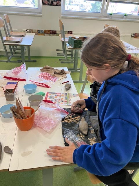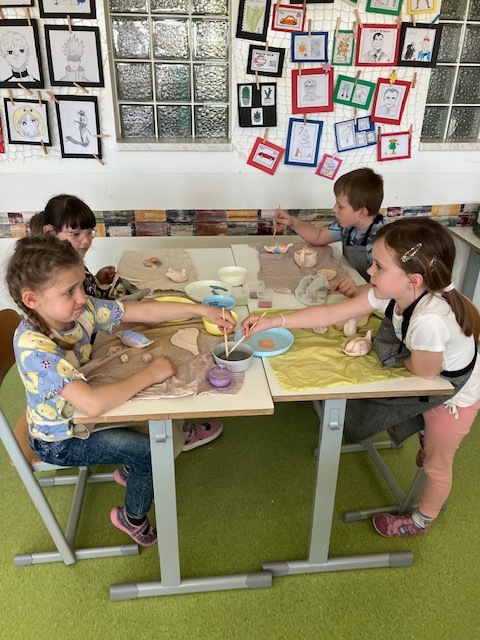 Modelování a vymačkávání do formy, téma – Jaro.