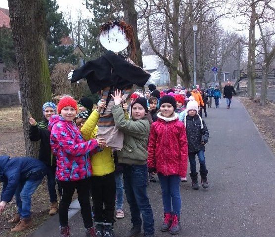 Vítání jara a vynášení Morany patří mezi velmi starobylé zvyky. Žáci 3.B dnes proto bohyni smrti a zimy vyrobili, oblékli, společně se 3. C vynesli a „utopili.“