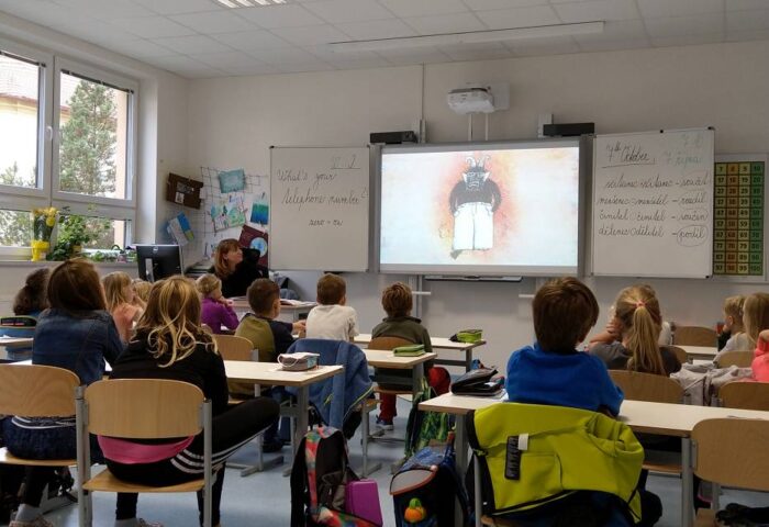 Na závěr našeho projektu Celé česko čte dětem přijela žákům 4.ročníků přečíst sympatická snowboardistka Eva Samková …..