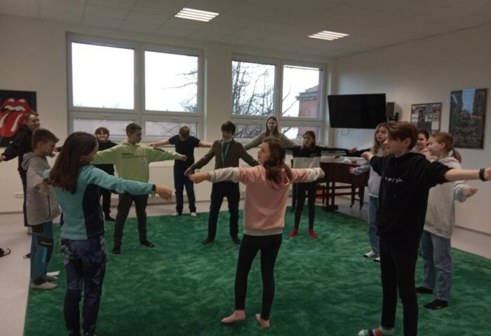 Hodiny Výchovy ke zdraví se často odehrávají v přírodě, ale pokud nám to počasí nedovolí, musí nám stačit třeba školní salonek v nové budově. I tentokrát jej žáci 6.B využili, aby se zde protáhli během výuky a odreagovali se od školních lavic – při rozcvičte či různých pohybových hrách. Ing. Kateřina Bačová a 6.B